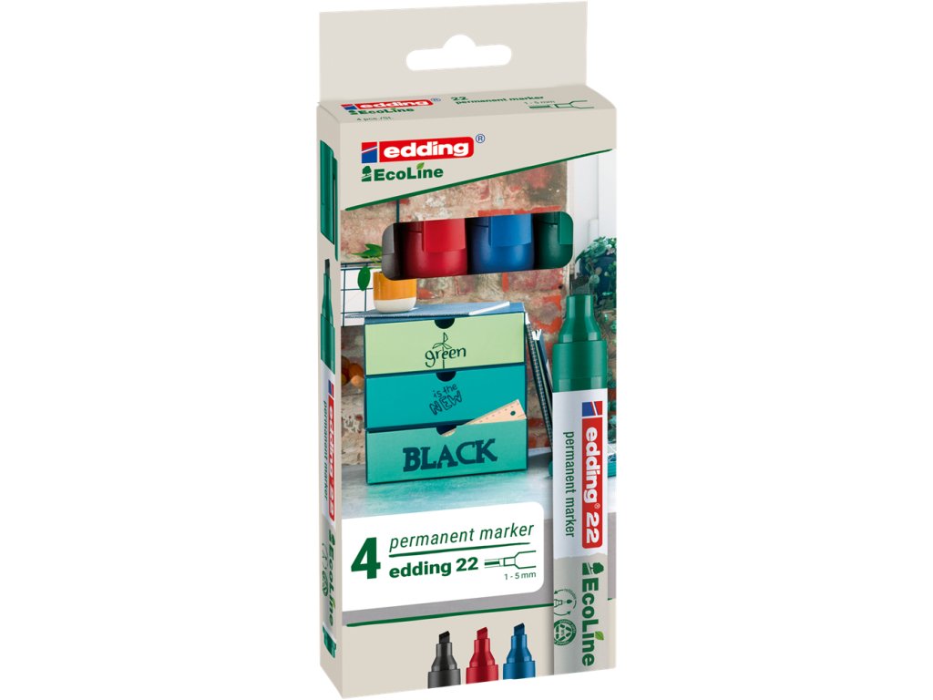 Edding 22 Ecoline | ekologický permanentní popisovač, seříznutý hrot