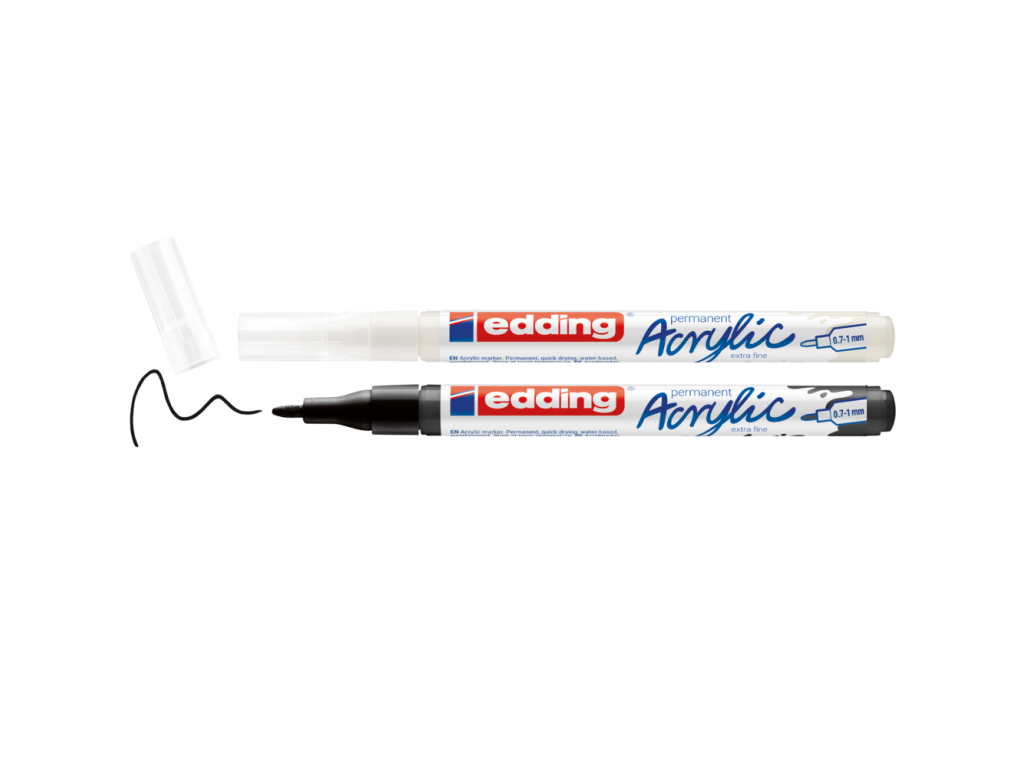 Akrylový popisovač edding 5500 EF pro spontánní kreativitu na světlých i tmavých površích materiálů jako je plátno, malířský papír, hladké dřevo, terakota a kámen. Vysoce kvalitní pigmentovaná akrylová barva na bázi vody je po zaschnutí permanentní, světlostálá a bez zápachu. Vhodné pro kreativní vyjádření umělců i laiků.