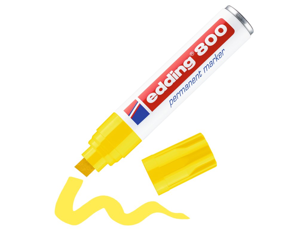 Robustní permanentní fix vhodný pro výrazné a silné značení na téměř všechny materiály. Dobře bude psát na kov, plast, sklo, karton, suché dřevo nebo kůži. Edding 800 má seříznutý hrot o šířce 4-12 mm. Je rychleschnoucí, odolný vůči vodě a vysokým teplotám. Odolává opotřebení téměř na kterémkoli povrchu.